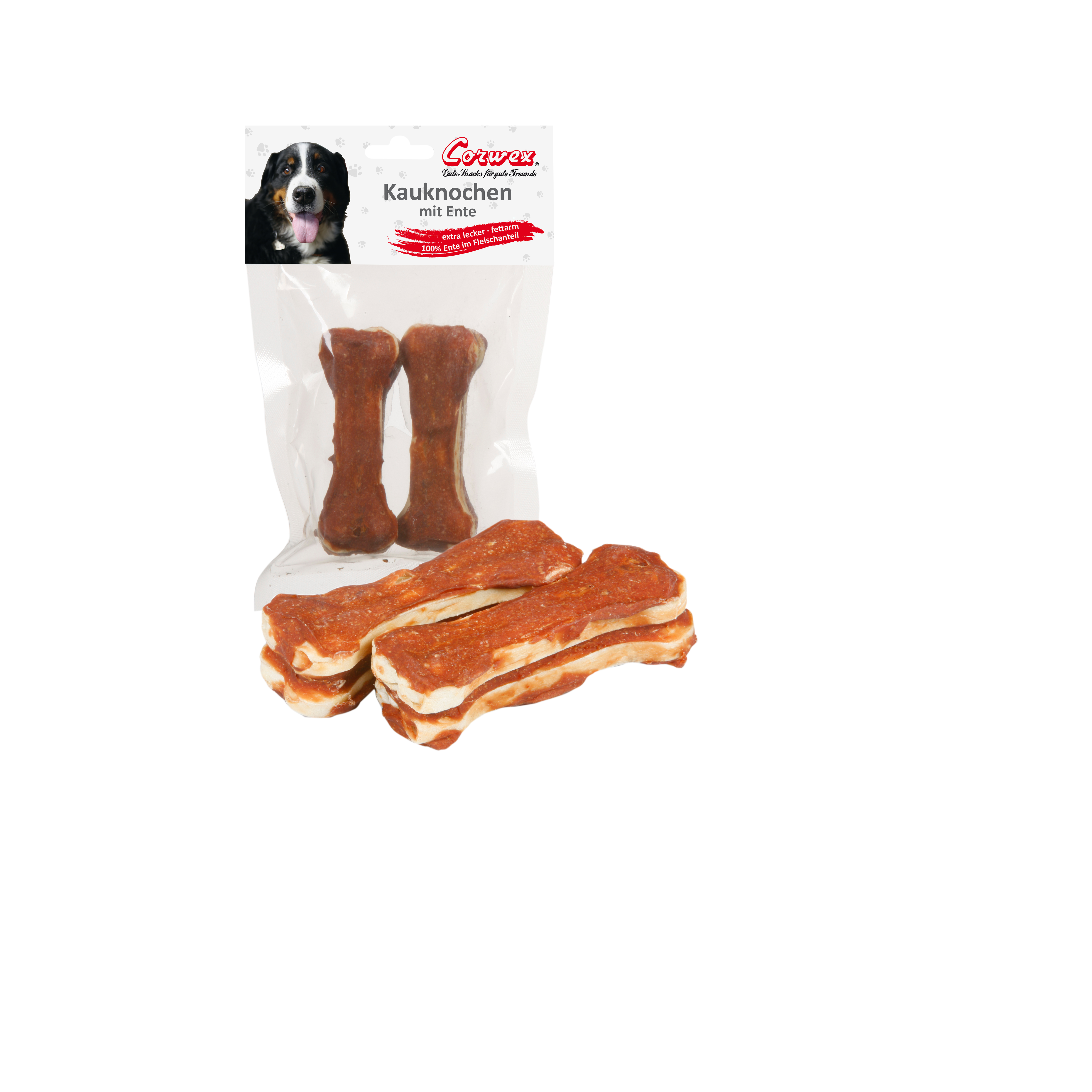 Zusammensetzung: Rinderhaut (72,0) Entenfilet (23,8%), Sorbit, Maisstärke, Mineralstoffe