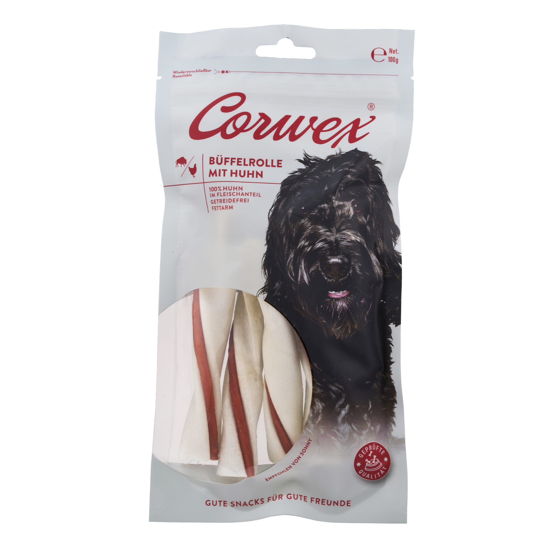 Zusammensetzung: Huhn, Büffelhaut, Kartoffel- stärke, Sorbit, Mineralstoffe